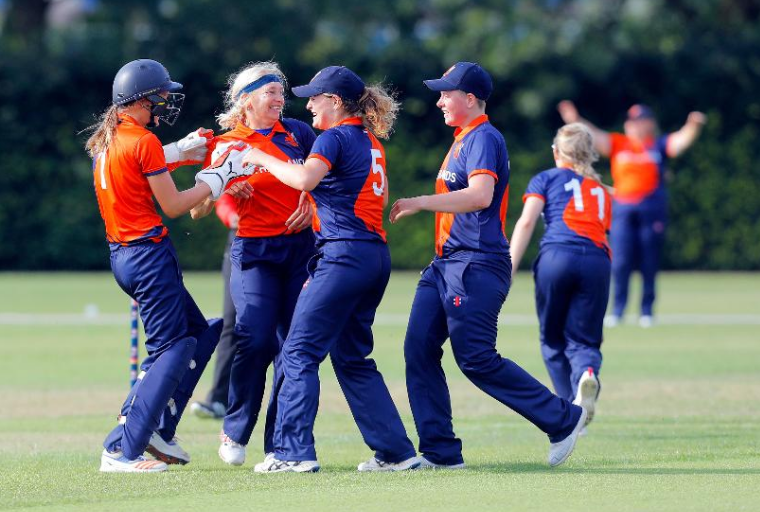 Day two saw a dominant display by the Dutch women setting Germany 196 in their twenty overs. Sterre Kalis led the way with a dominant 126 off 76 balls including ten fours and five sixes which paved the way for a comfortable victory for the Netherlands. In the second match of the day, Scotland and Netherlands played out a low-scoring classic. The Netherlands bowled out Scotland for 96 before an inspired spell from skipper Kathryn Bryce of 2-9 from 4 overs saw the Dutch needing seven from the final over. A run out off the final ball for the Netherlands saw the match head to a super over where Bryce teamed up with sister Sarah to chase the seven-run total set by the Dutch.