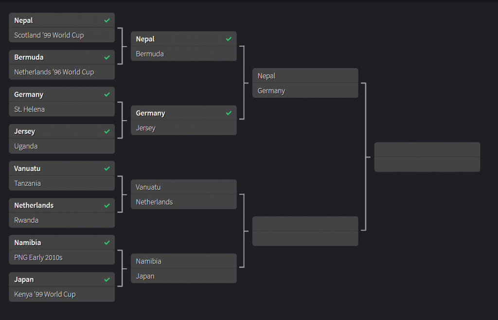 In the first quarter-final Nepal faced some stiff competition from a brave Bermuda who won on the Twitter vote, though the strength across Facebook was enough for the favourites to progress.