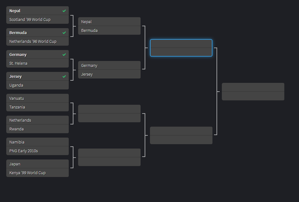 Tanzania and Nepal progressed from Group A, while Vanuatu and Scotland 1999 progressed in Group B. The Pink of Bermuda stormed home and Rwanda scraped enough votes across Twitter and Facebook to squeeze through in Group C and Group D was domination by the Dutch, with both the current kit and the 1996 World Cup shirt running away from the field to advance.