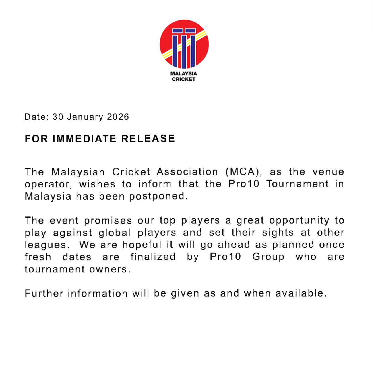 Malaysia Cricket Association, who are only playing a minor role in the competition as venue operator among other minor support, provided a statement on their side.