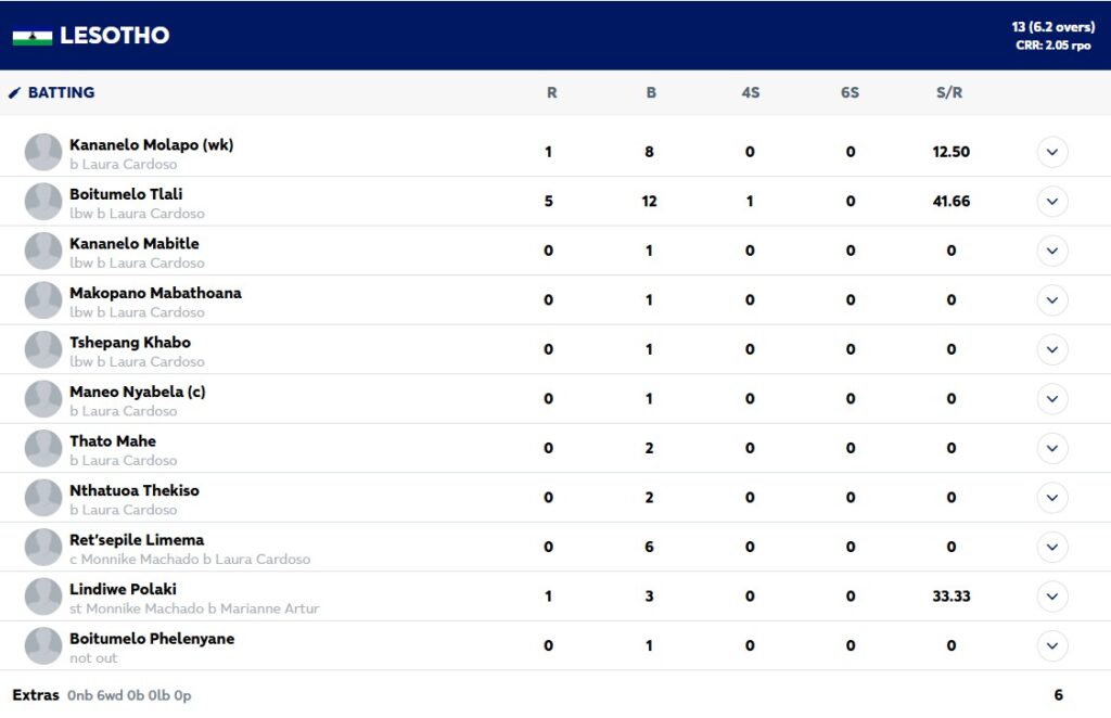 Brazil all-rounder Laura Cardoso has broken the World Record for the best individual bowling figures in a women’s T20I, taking 9/4 from just three overs in her side’s 189-run win over Lesotho at the BCA Kalahari Women’s Tournament in Botswana.
