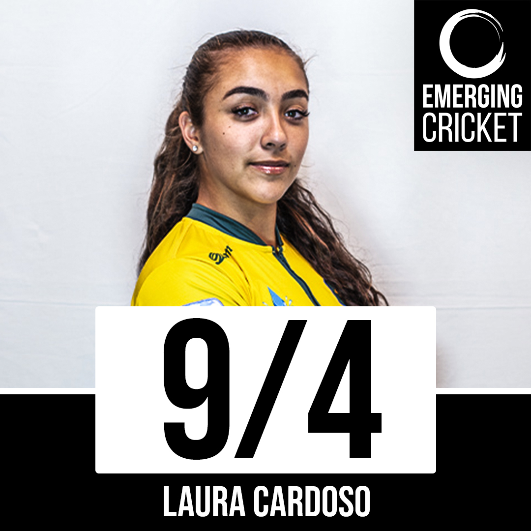 Cardoso only had to wait one ball for a sixth scalp, and finished off her second over with another, at one point boasting figures of 7/0 (2).